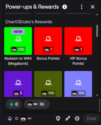 Every hour or so we run a raffle for 1000 “Coinage”! After 1 hour completes StreamElements will automatically pick a winner from the entries.